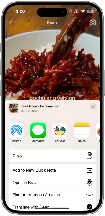 Turn recipe, travel, and workout vdioes from Instagram, YouTube, and Tiktok into simple notes. Copy to Apple Notes in one click!